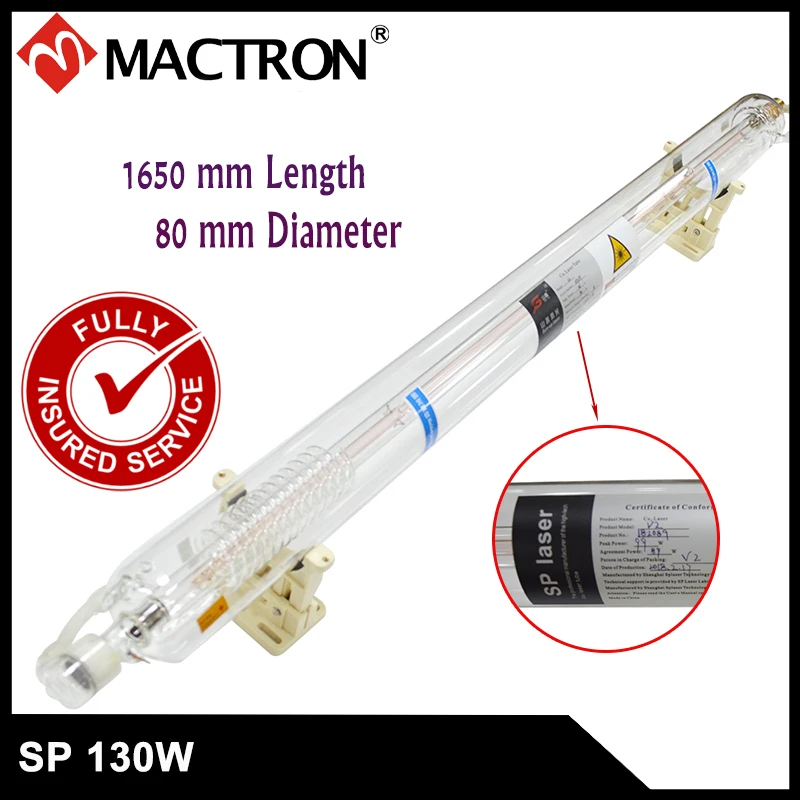 BEST QUALITY 1 PCS High Quality SP Brand Water Cooled 130W Co2 Laser Tube 1650mm Length 8 Months Warranty