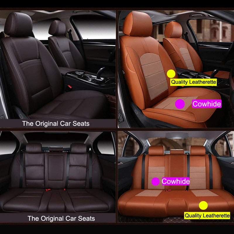 AutoDecorun Perforated Leather Seat Covers for Jeep Compass Accessories Cowhide Car Seat Protectors